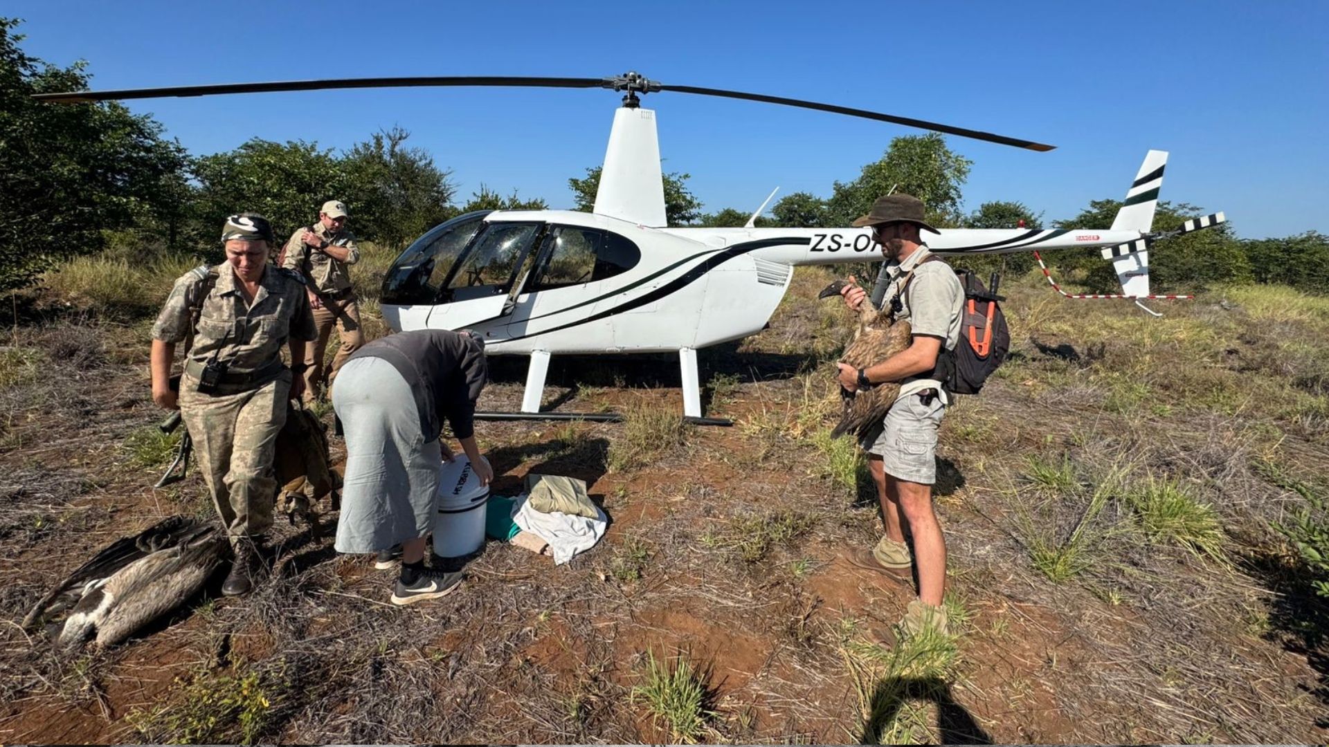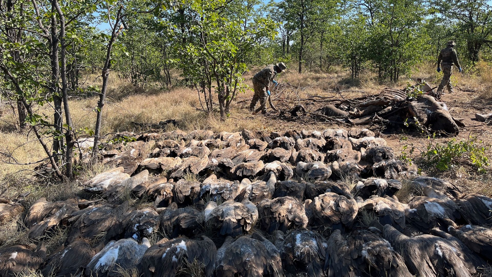 Even so, the scale of the tragedy was devastating: 123 vultures had already perished — 102 White-backed, 20 Cape and one Lappet-faced. More than 20 conservationists, vets, and rangers were mobilised, working against the clock with poisoning treatment kits and constant monitoring. The EWT Birds of Prey Programme has achieved a 96% survival rate for poisoned vultures found alive in recent years, and many rescued from this scene were back at their nests within days.
